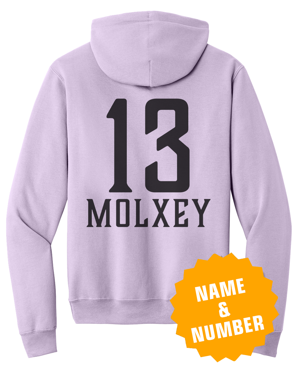 The Lavender features your choice of front design of State, G.O.A.T. or Bolt logo on a soft, cotton-poly hoodie with optional personalized details on the back.